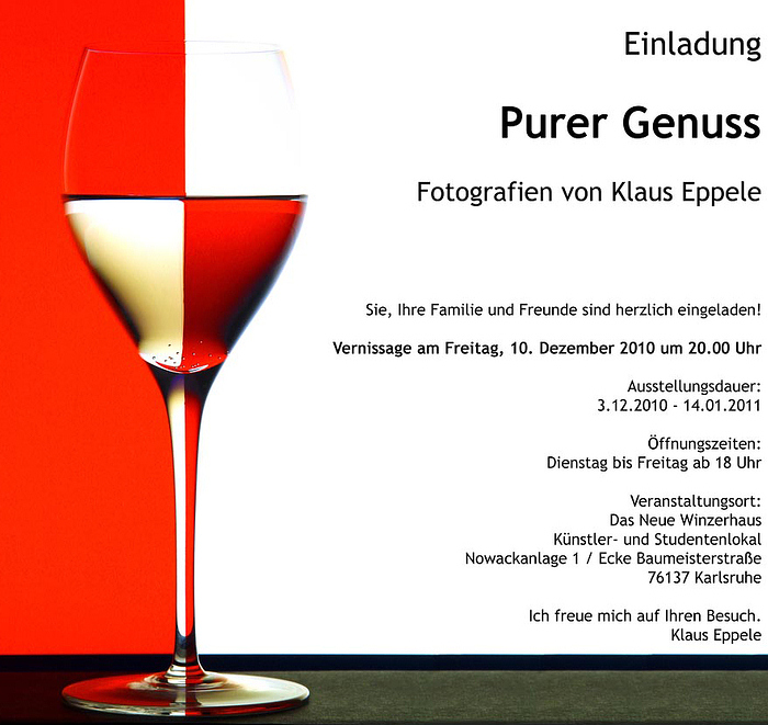 Dienstag bis Freitag ab 18 Uhr Vernissage: Freitag, 10. Dezember 2010 um 20 Uhr Einladung zur Vernissage: