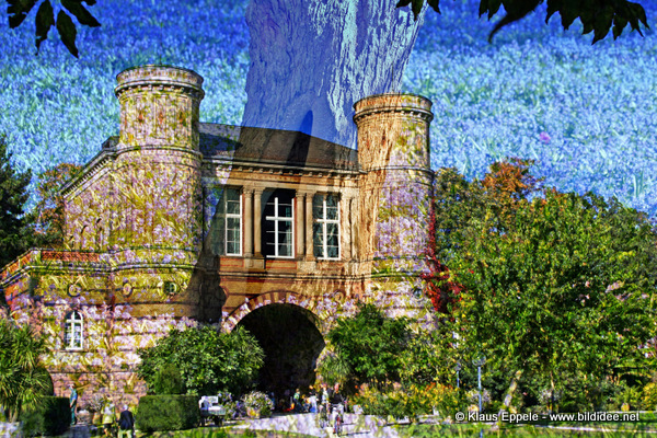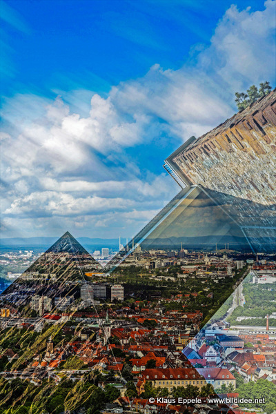 Turm auf dem Turmberg und Blick von dort auf Karlsruhe |