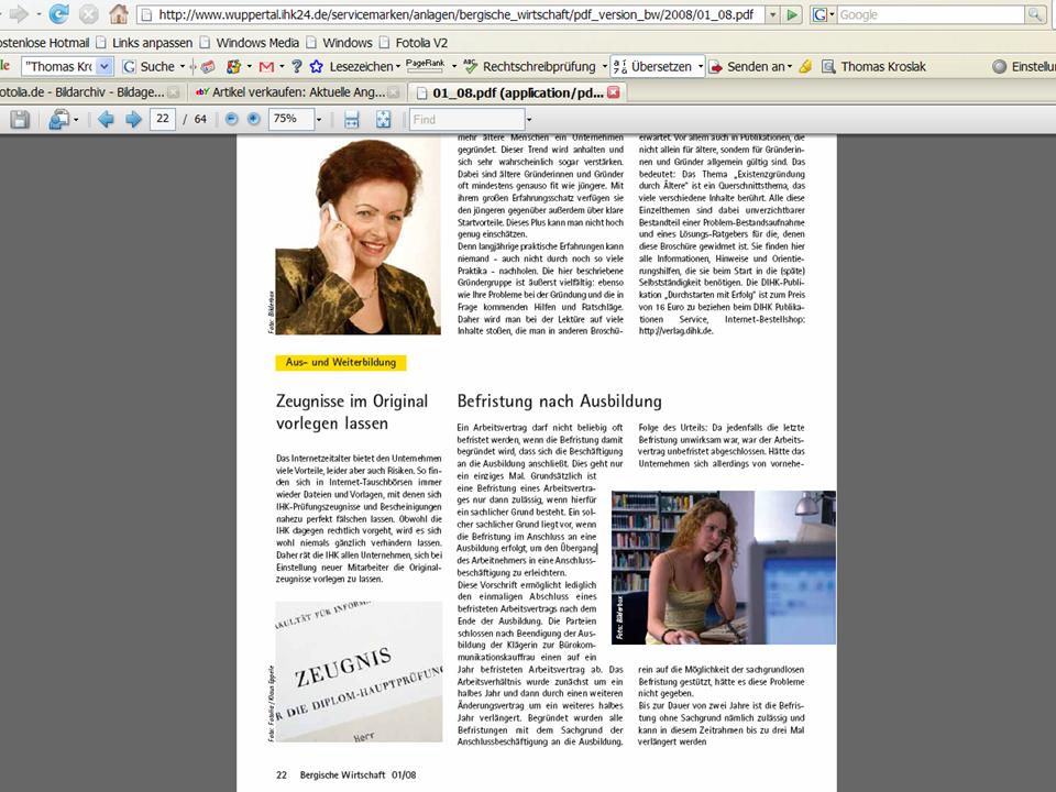 Die Industrie- und Handelskammer Wuppertal-Solingen-Remscheid veröffentlichte mein Foto “Diplom-Zeugnis” in der Zeitschrift