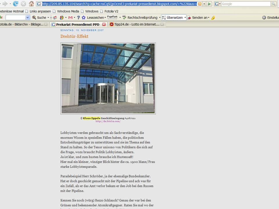 Meinen “Geschäftseingang” findet man in einem Beitrag des “Prekariat Pressedienstes PPD”.  |