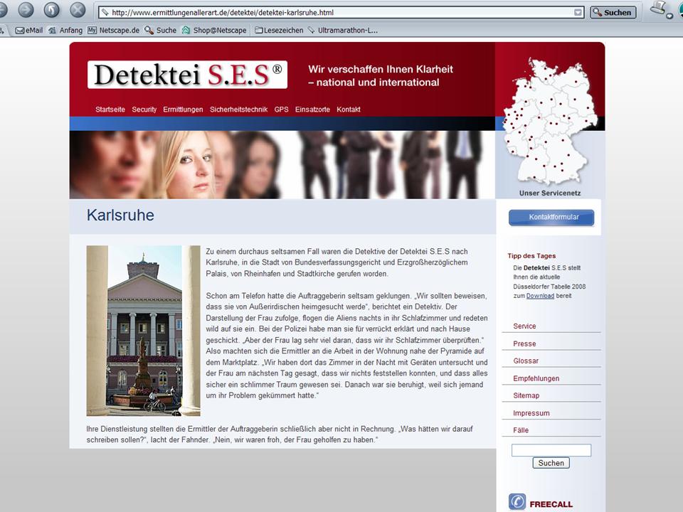 Die Detektei S.E.S illustrierte einen Einsatzbericht in Karlsruhe mit meinem Foto “Rathaus Karlsruhe”.  |