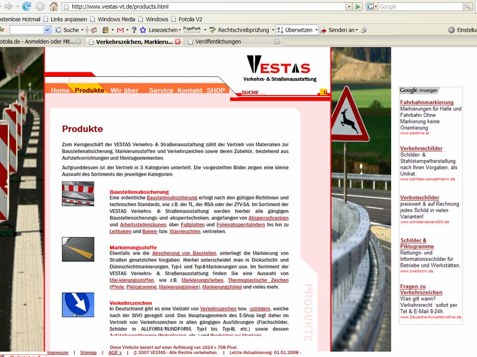 Das Unternehmen VESTAS zeigt mein Foto“Fahrbahnmarkierung” auf www.vestas-vt.de.  |