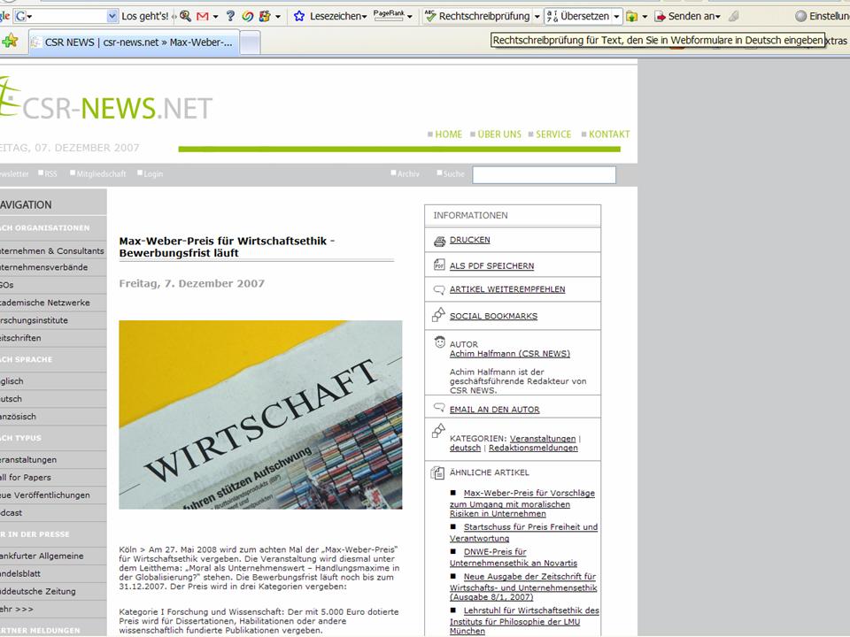 Das Foto “Wirtschaft” erschien auf CSR-NEWS.NET in einem Beitrag zum Max-Weber-Preis für Wirtschaftsethik.  |