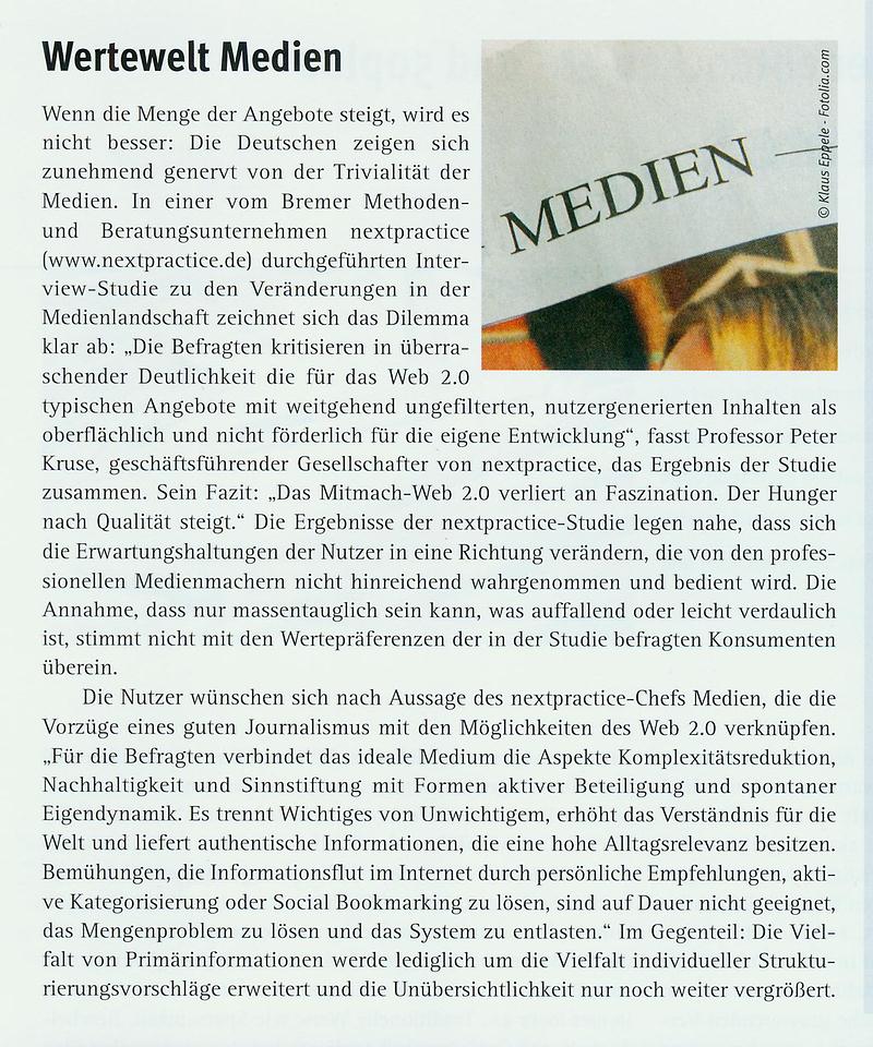 Das Foto “Medien” erschien in der Fachzeitschrift DIREKT MARKETING, Ausgabe 12/2007, zu einem Kurzbeitrag über die