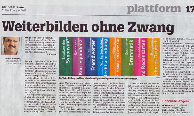 Das Foto “Bücher” erschien in der htr hotelrevue Nr. 35/2007 auf der Seite 17.  |