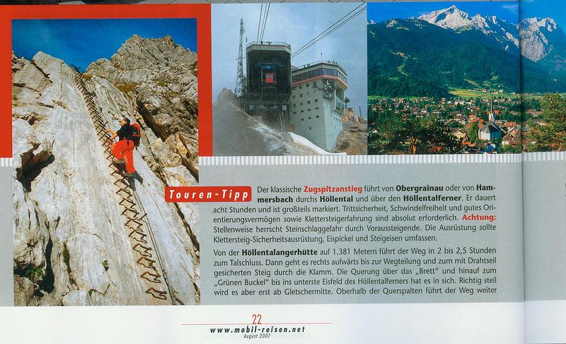 Foto “Tiroler Zugspitzbahn” befindet sich in der Beilage mobil-reisen der Zeitschrift Reisemobil 8/07, Seite 22.  |