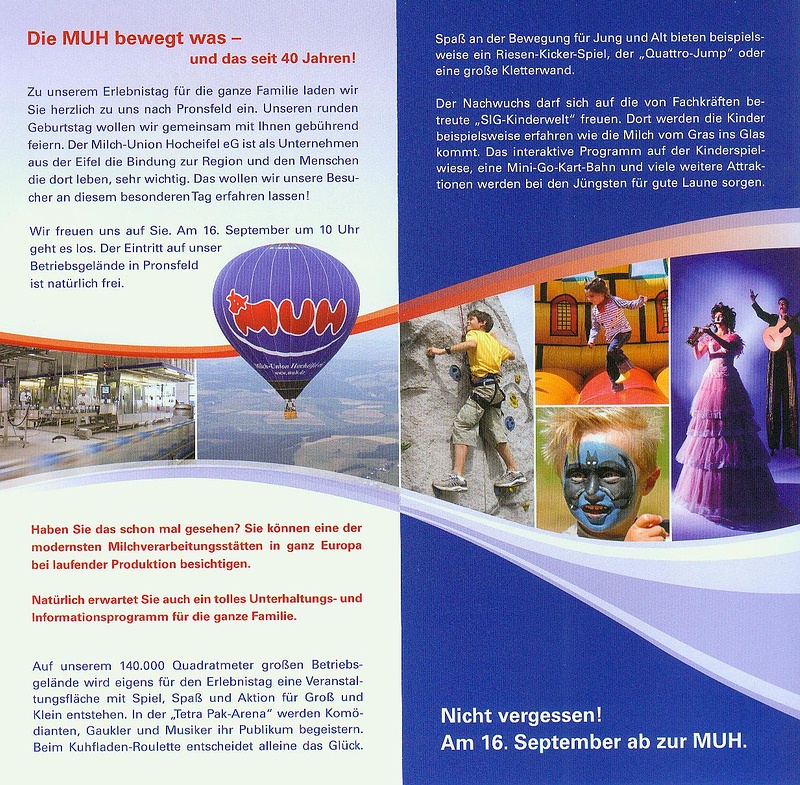 Foto “Senkrechtstarter” findet man in der Einladung der Milch Union Hocheifel (MUH) zu einem Erlebnistag in der Eifel.  |