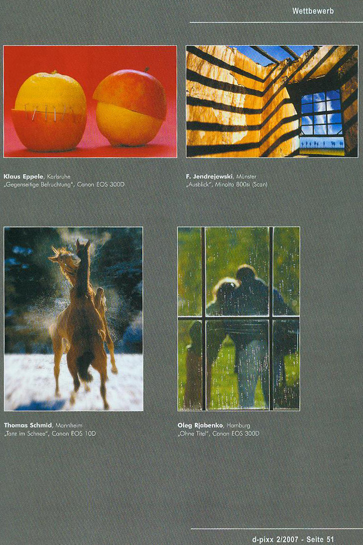 Foto “Gegenseitige Befruchtung” kam in der zweiten Runde des “d-pixx-Fotograf 2007-Wettbewerbs” unter die besten 13 Fotos und wurde in der d-pixx