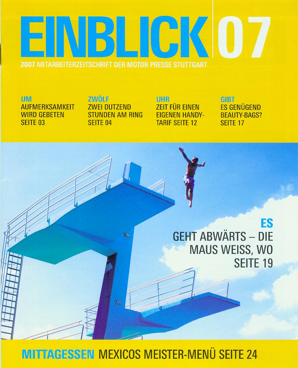 Foto “Freier Fall” hat es auf die Titelseite von “Einblick 07”, der Mitarbeiterzeitschrift der Motor Presse Stuttgart, geschafft.  |