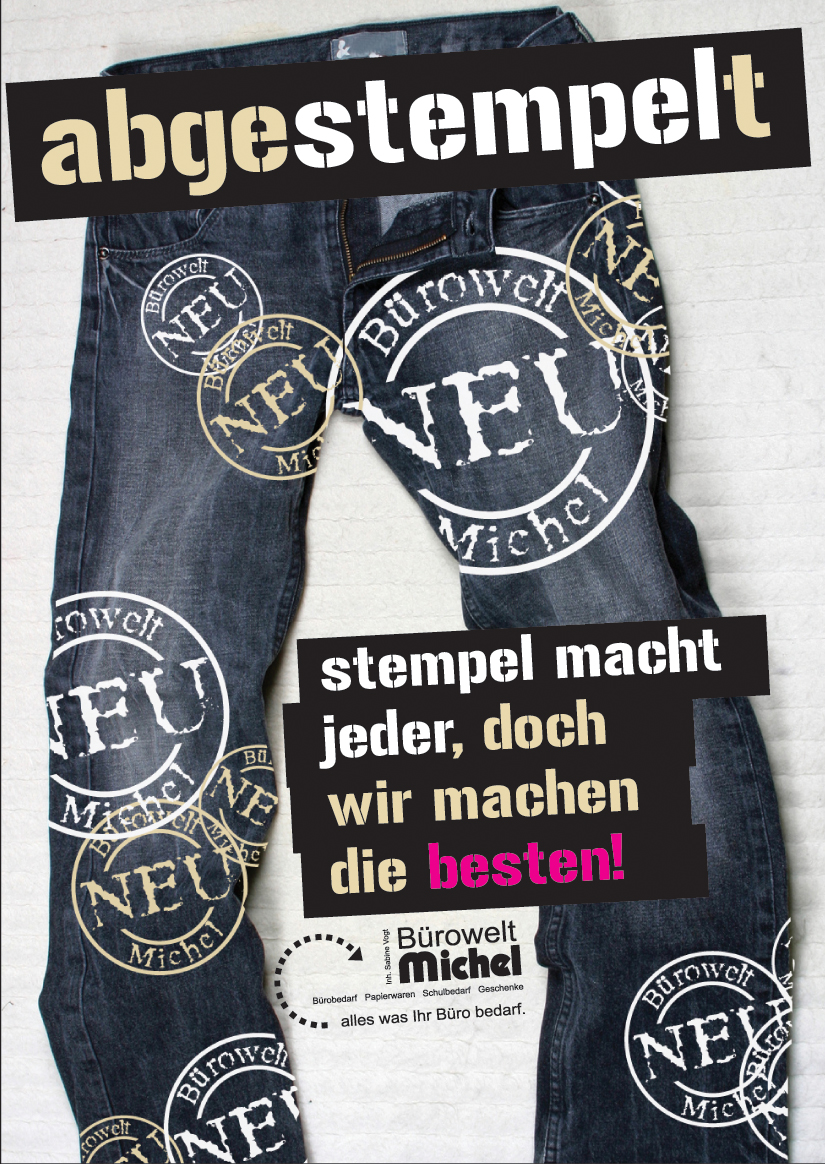 setzt meine “Hosen” für eine große Werbekampagne ein: Flyer, großformatige Poster, Postkarten und Werbeanzeigen in Zeitungen.  |