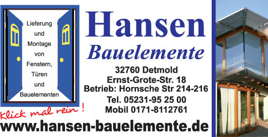 einen Sportplatz-Werbebanner der Firma Hansen-Bauelemente.  |