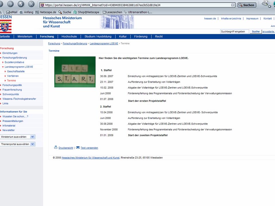 Das Hessische Ministerium für Wissenschaft und Kunst verwendet mein Foto “Start-Ziel” für eine Terminseite im Internet.  |