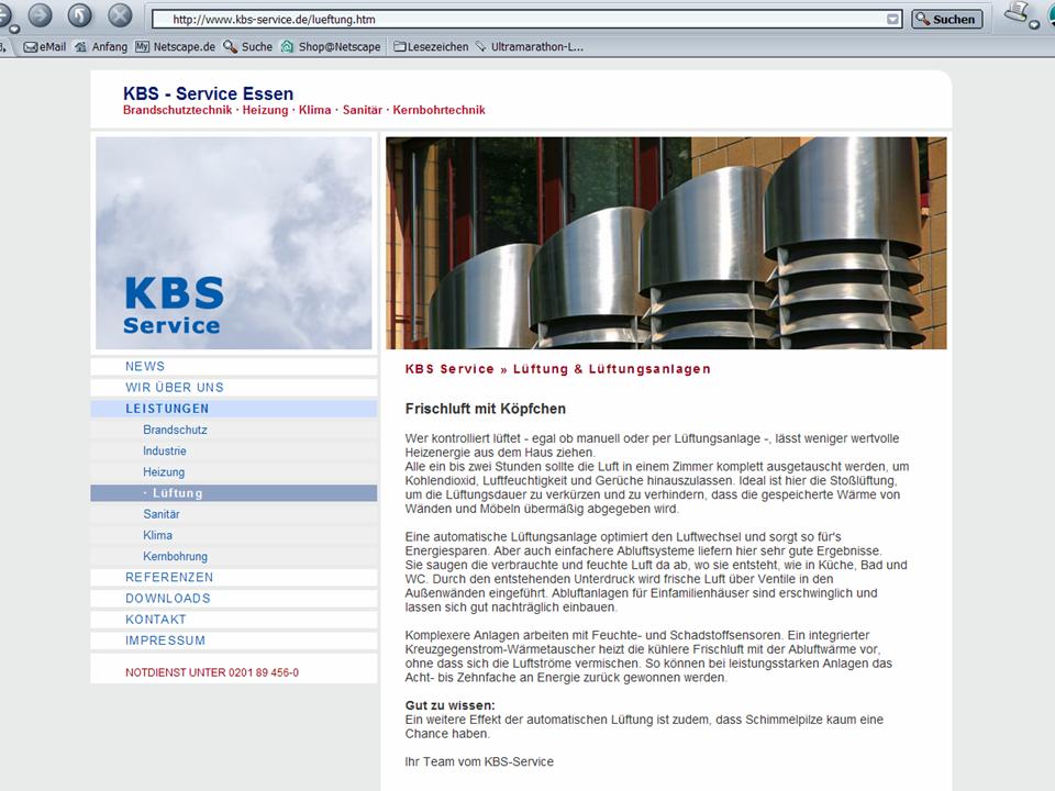 Die Grafikdesignerin Manuela Kaiser entschied sich bei der Gestaltung der Webseite www.kbs-service.de für mein Foto “Frischluft”.  |