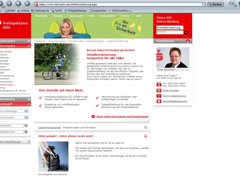 Die Kreissparkasse Köln zeigt mein Foto “Freihändig” auf www.ksk-koeln.de im Teaser für Unfallversicherungen.  |
