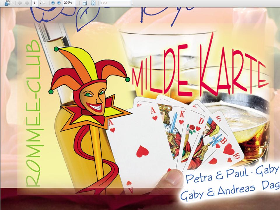 Die Druckerei Müller aus Roth verwendet mein “Full House” in einer Gratulationskarte für einen Rommee-Club.  |