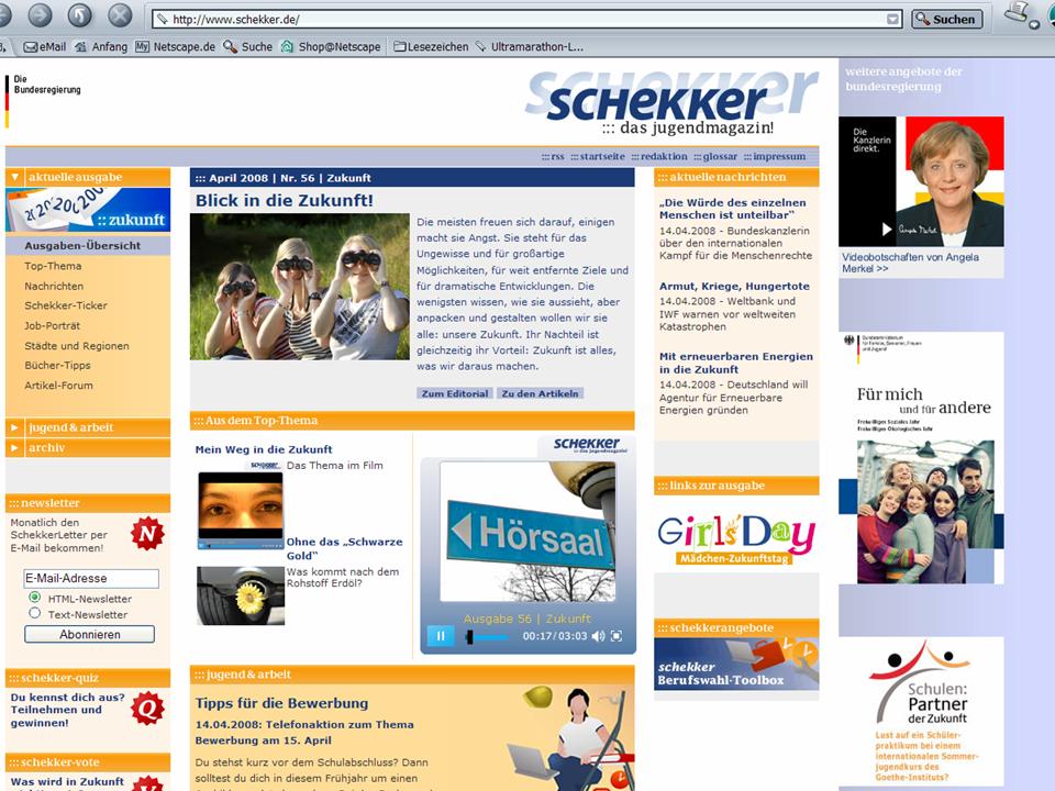 Die ElementarFilm Medienproduktion verwendet mein Foto “Hörsaal” im Trailerfilm 56 des Jugendmagazins schekker.  |