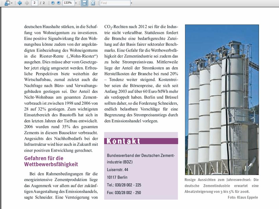 Mein “Zementwerk” erschien in der Fachzeitschrift MIRO Mineralische Rohstoffe 1/2008, Seite 5.  |