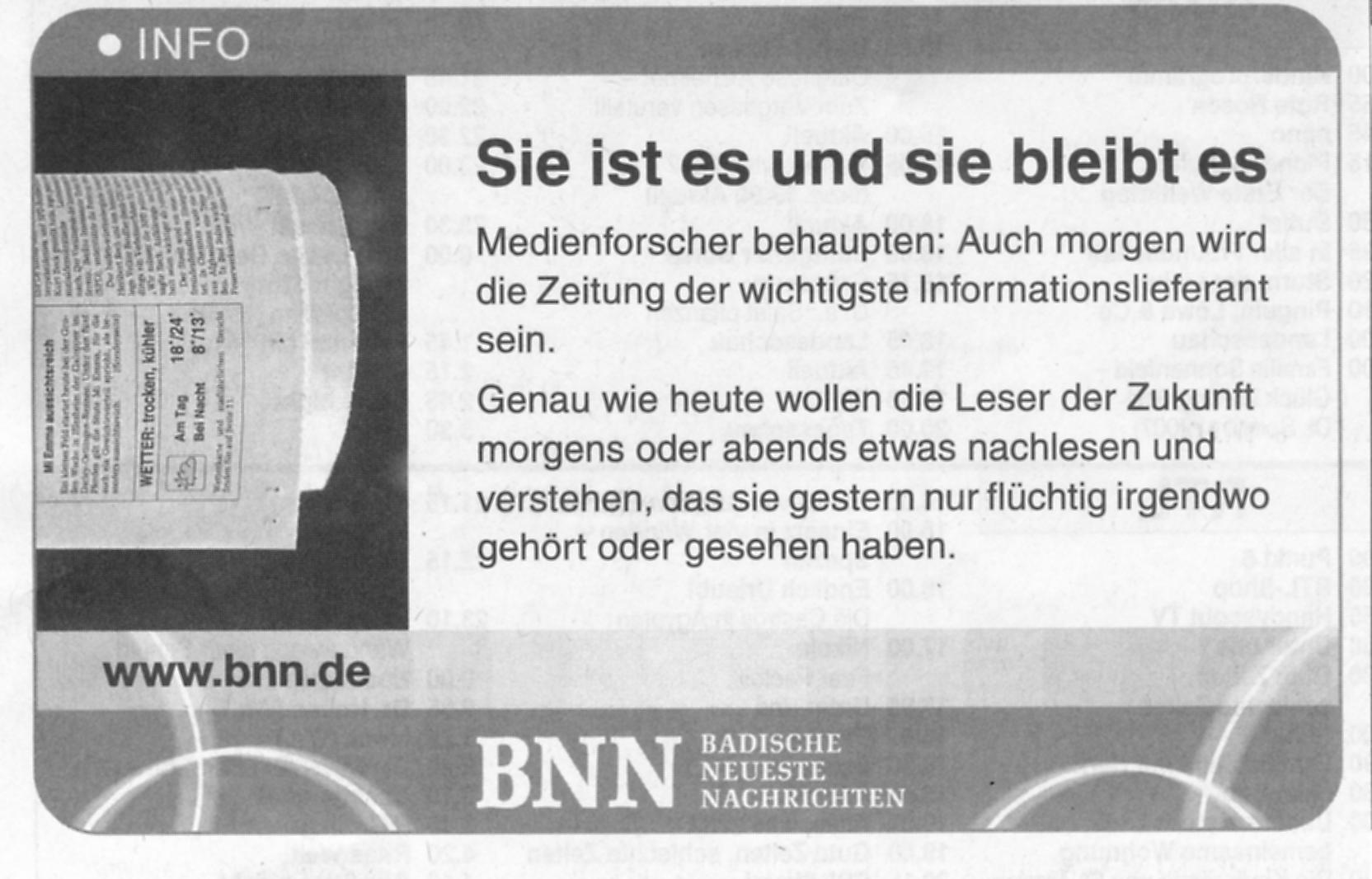 Die Badischen Neuesten Nachrichten verwenden mein Foto “Neueste Nachrichten” für eine Anzeige in eigener Sache.  |