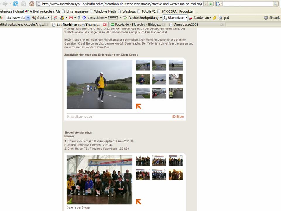 Das Läuferportal www.marathon4you.de veröffentlichte 80 meiner Fotos vom 6. Marathon Deutsche Weinstraße.  |