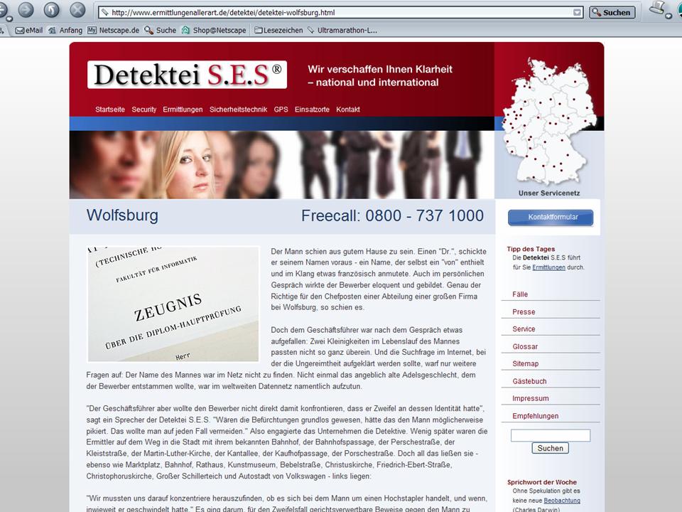 Unter www.ermittlungenallerart.de zeigt die Detektei S.E.S. mein Foto “Diplom-Zeugnis”.  |