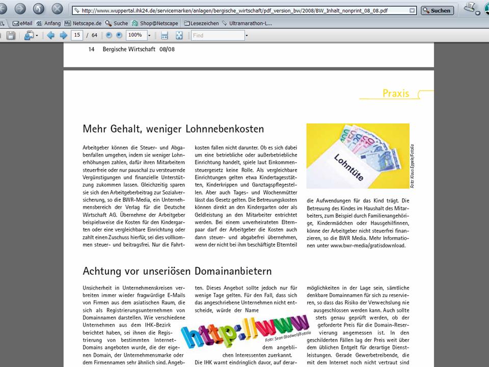Das Foto “Lohntüte” erschien im Magazin der Industrie- und Handelskammer Wuppertal-Solingen-Remscheidt “Bergische