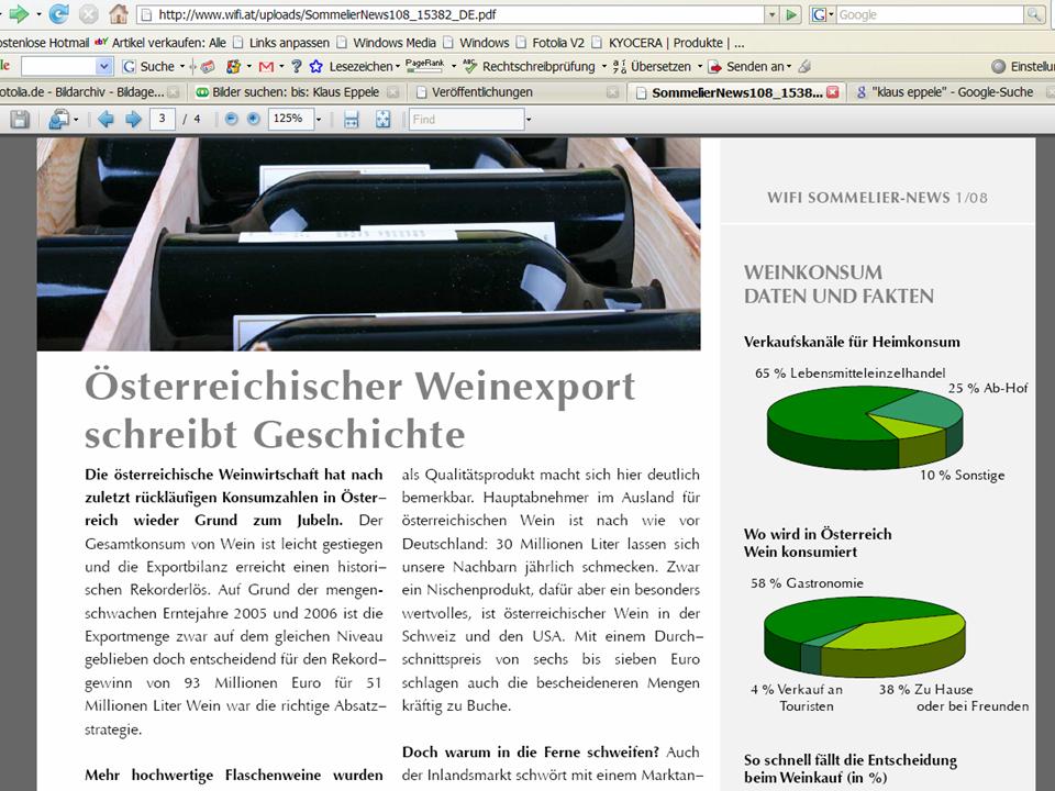 In den Sommelier-News 1/2008 von “WIFI der Wirtschaftskammer Österreich” erschien mein Foto “12 Flaschen Rotwein”