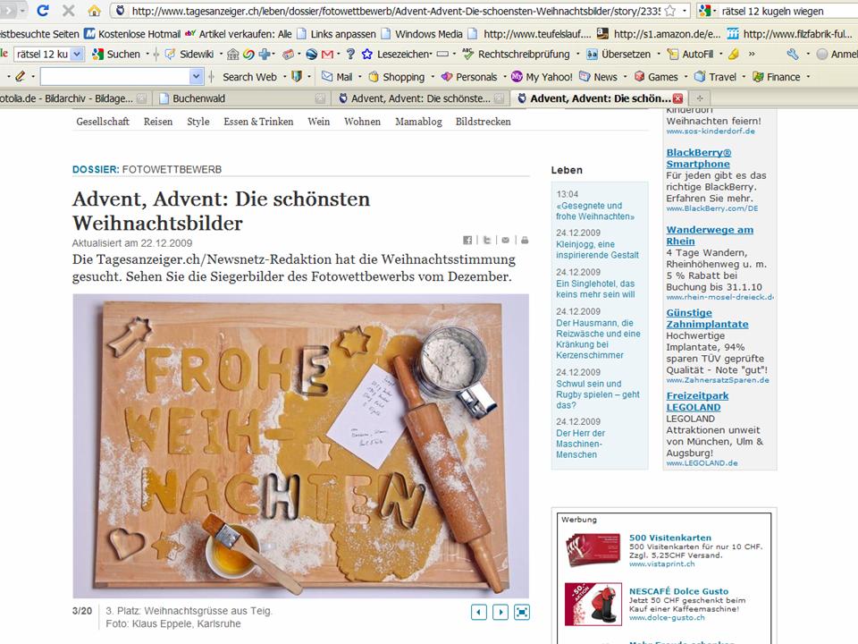 ”Advent, Advent. Die schönsten Weihnachtsbilder” hieß der Fotowettbewerb des Tagesanzeigers, bei dem meine “Frohe