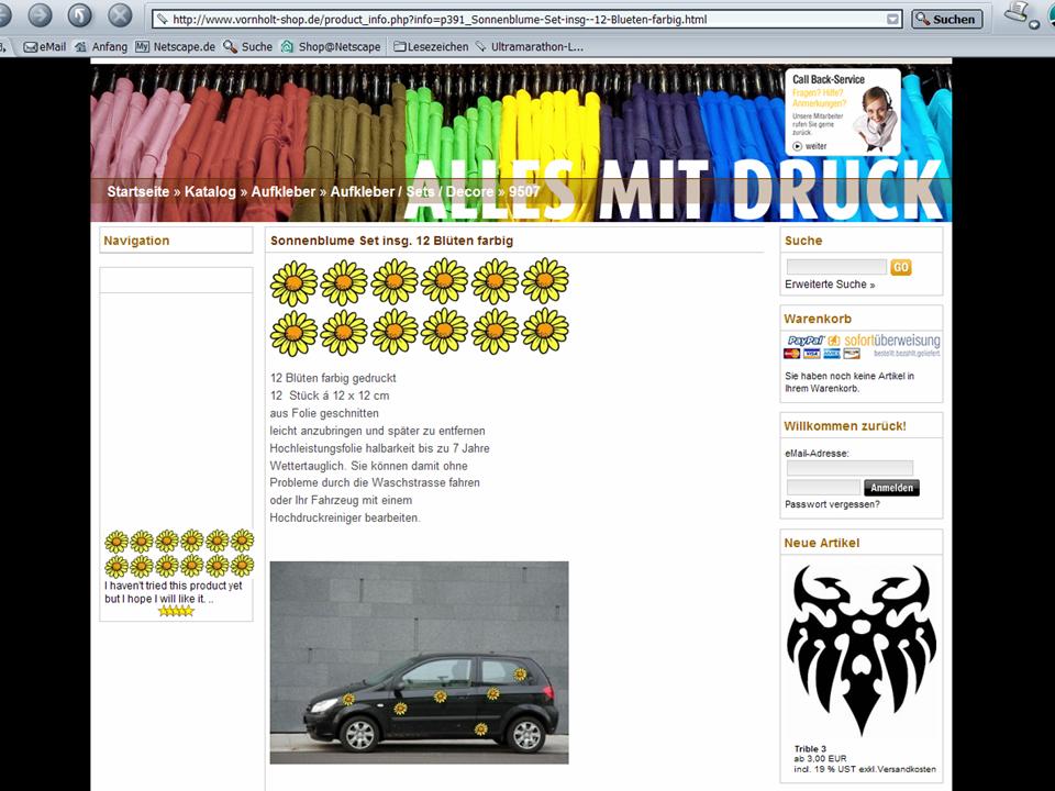 Andreas Vornholt demonstriert in seinem Online-Shop anhand meines Fotos “Schwarzes Auto” einige seiner Aufkleber.  |