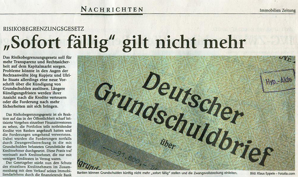 bringt mein Foto “Deutscher Grundschuldbrief” in die Ausgabe 33/08 der Immobilien Zeitung.  |