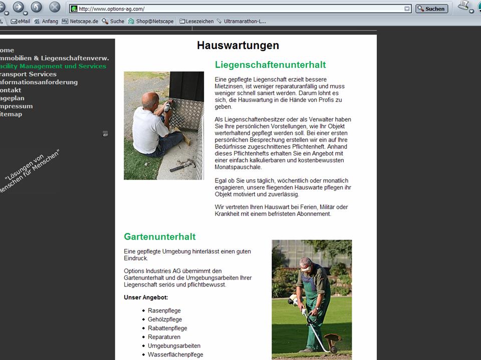Joho Web Design/IT brachte mein Foto “Gartenarbeiter” auf die Website von Options Industries AG.  |