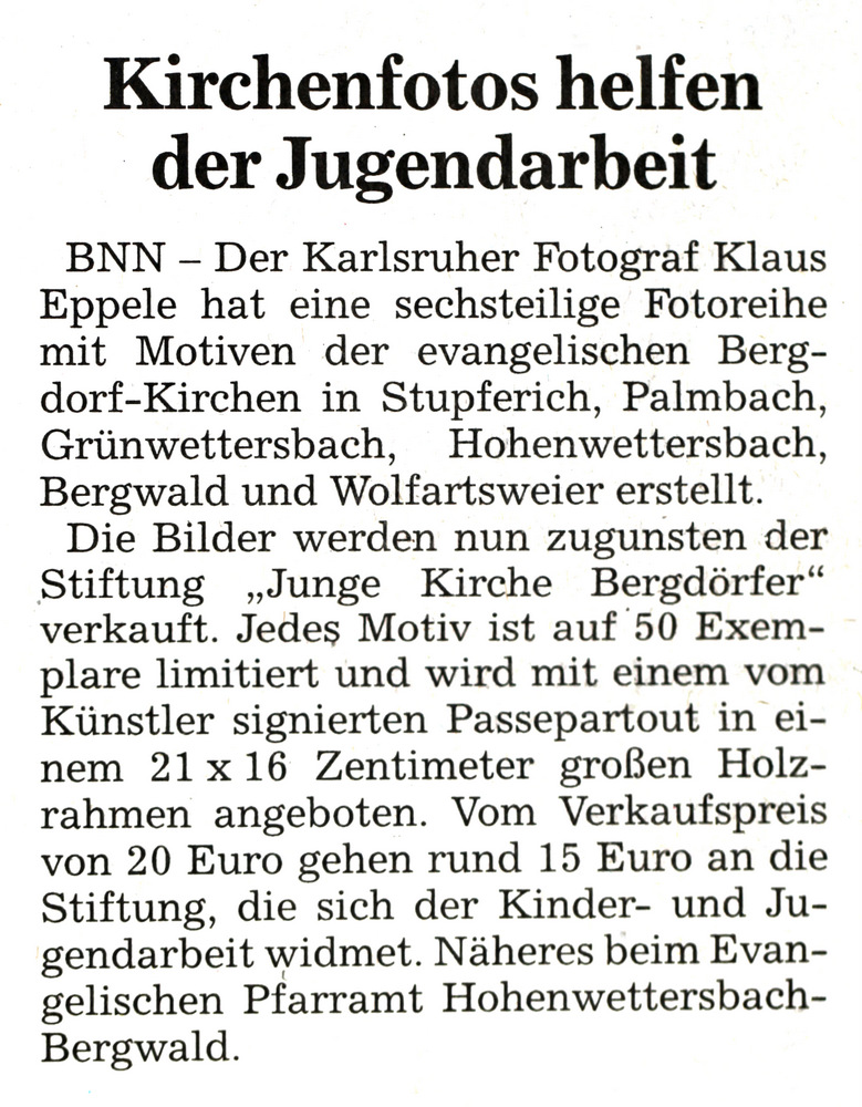www.karlsruhe-entdecken.de im November 2010fotoGEN, 5/2010 Der Kurier, 14. Mai 2010 Wettersbacher Anzeiger, 12. Mai 2010 Badische Neueste Nachrichten, 8. Mai 2010