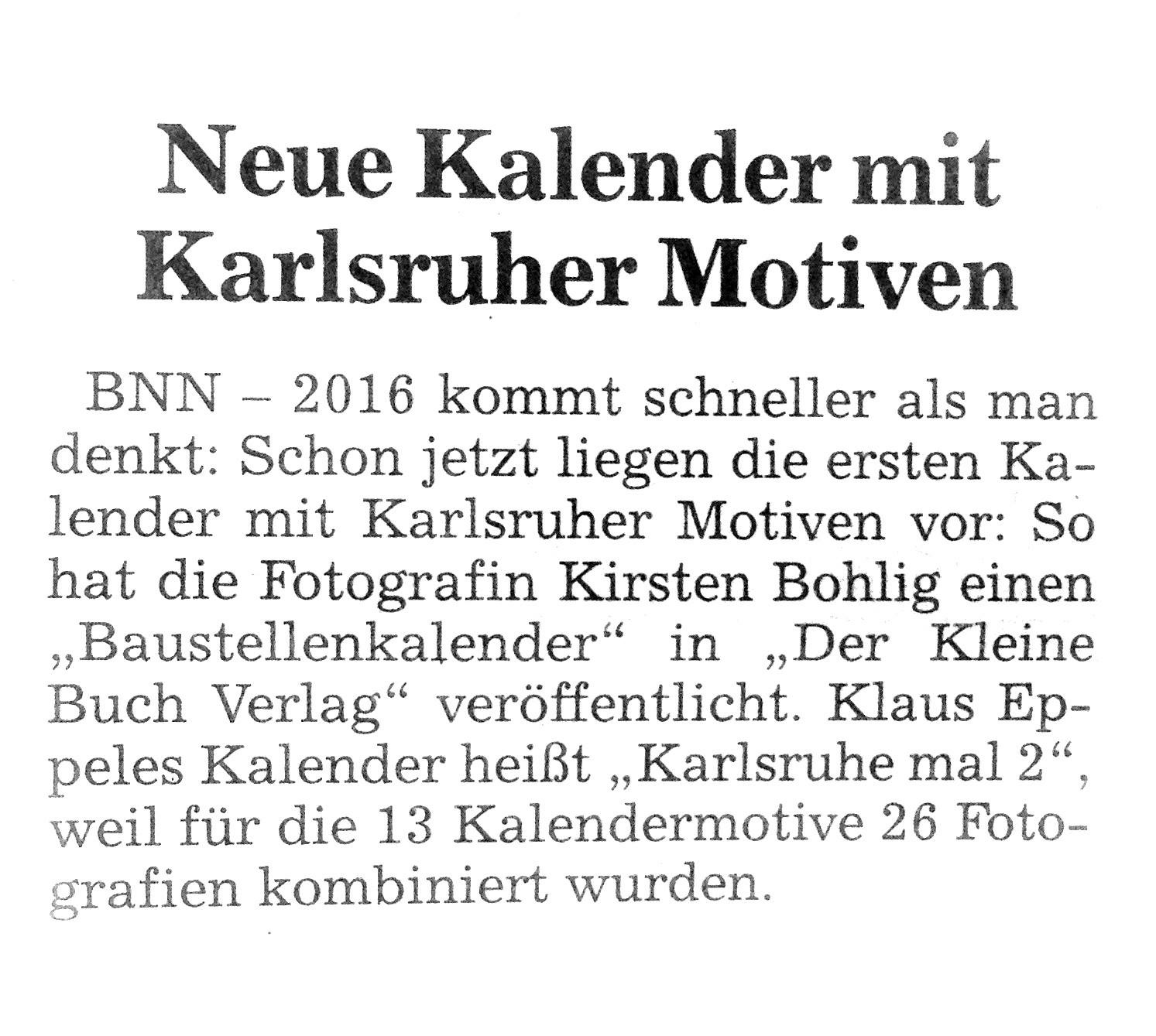 im August 2015Metropolevents im August 2015Karlsruhe-entdecken im August 2015Der Kurier am 14. August 2015Wochenblatt Karlsruhe am 05. August 2015Badische Neueste Nachrichten am 01. August 2015