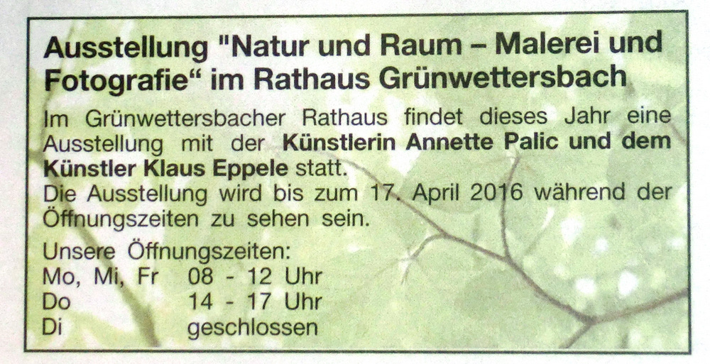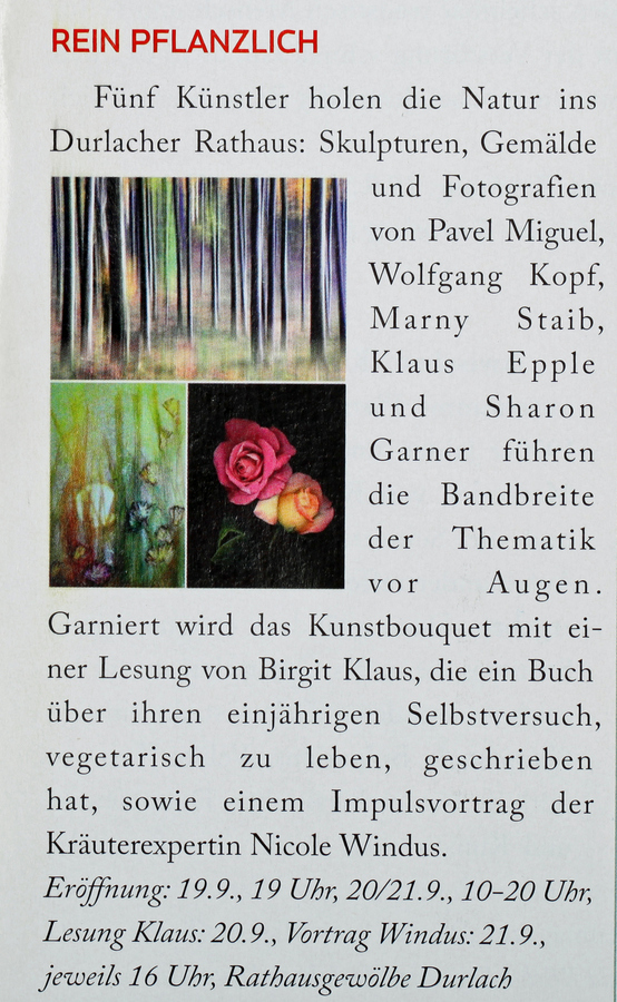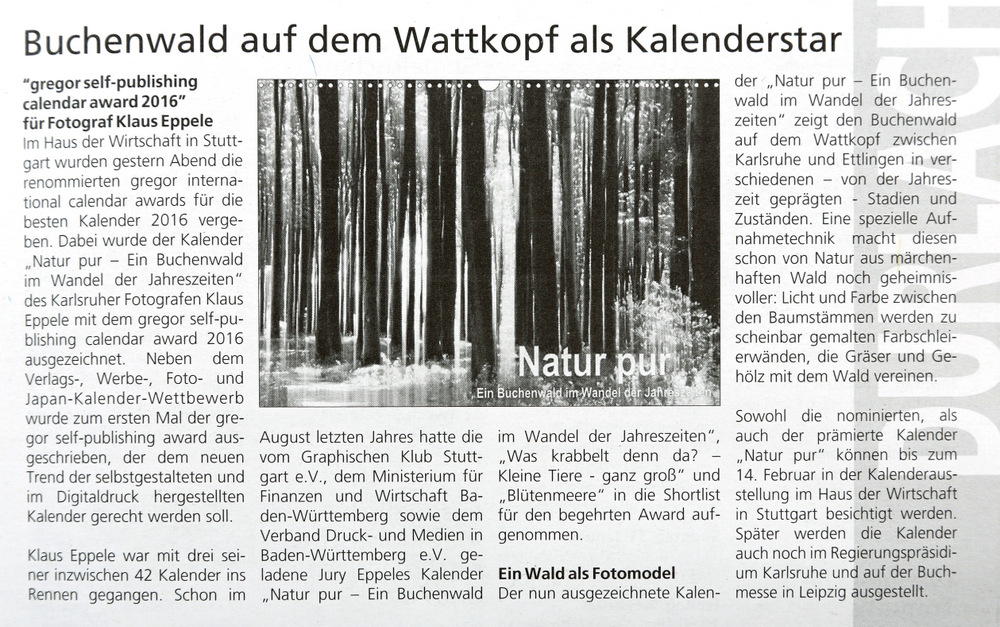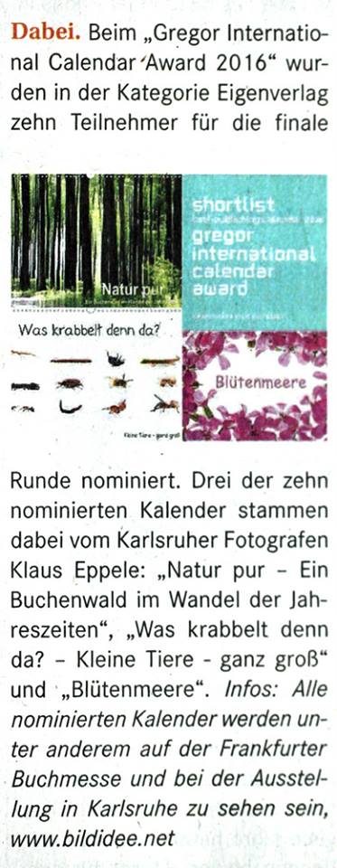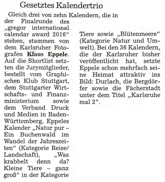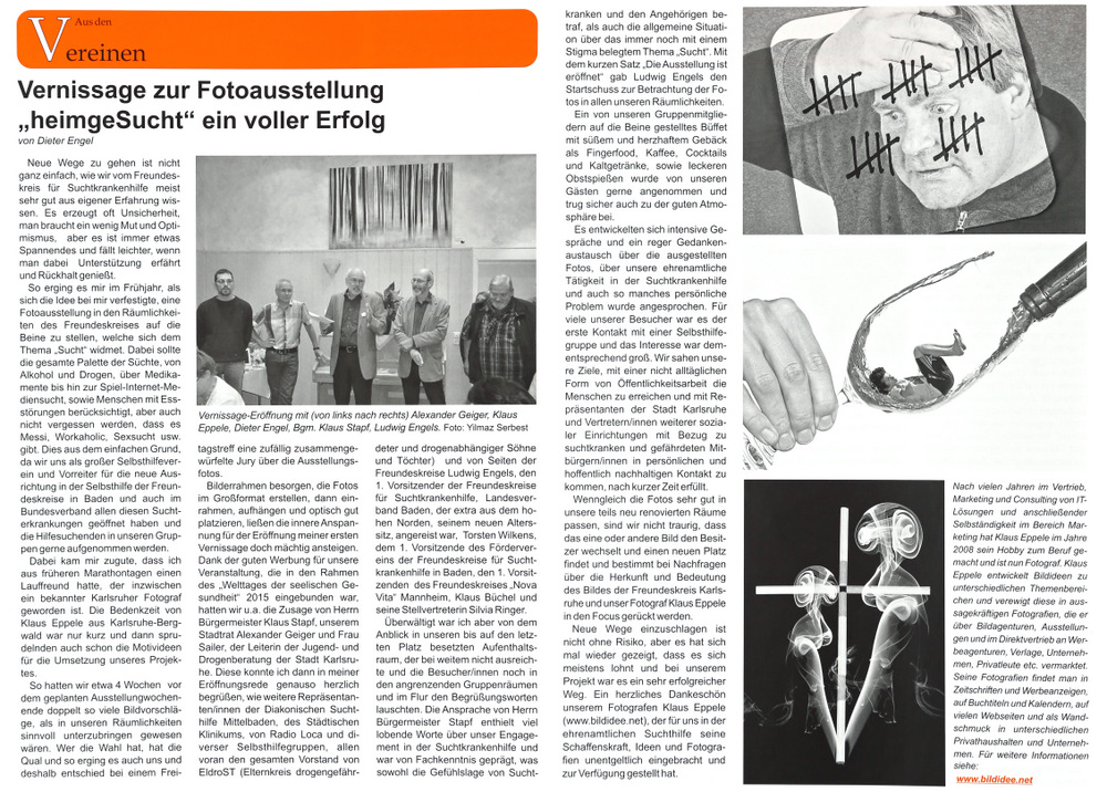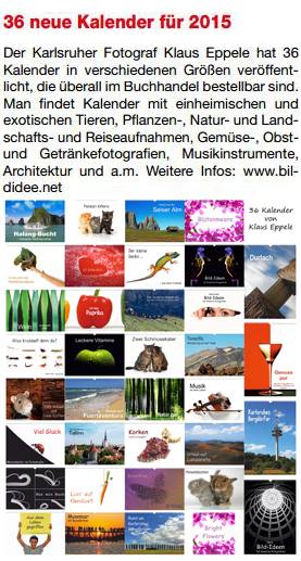 im Januar 2016Durlacher Blatt vom 10. Dezember 2015Wochenblatt Karlsruhe vom 09. Dezember 2015Neureuter Nachrichen im November 2015Freundeskreis aktuell im November 2015Klappe auf Special Herbst/Winter 2015Der Kurier vom 25. September 2015Wochenblatt Karlsruhe vom 16. September 2015Wochenjournal Durlach vom 28. August 2015Der Kurier am 04. September 2015Monatsspiegel im September 2015Badische Neueste Nachrichten am 15. August 2015