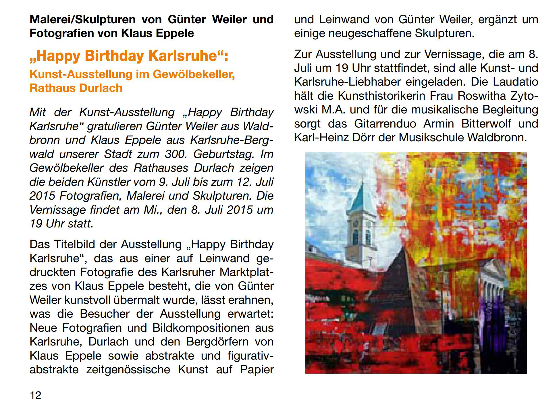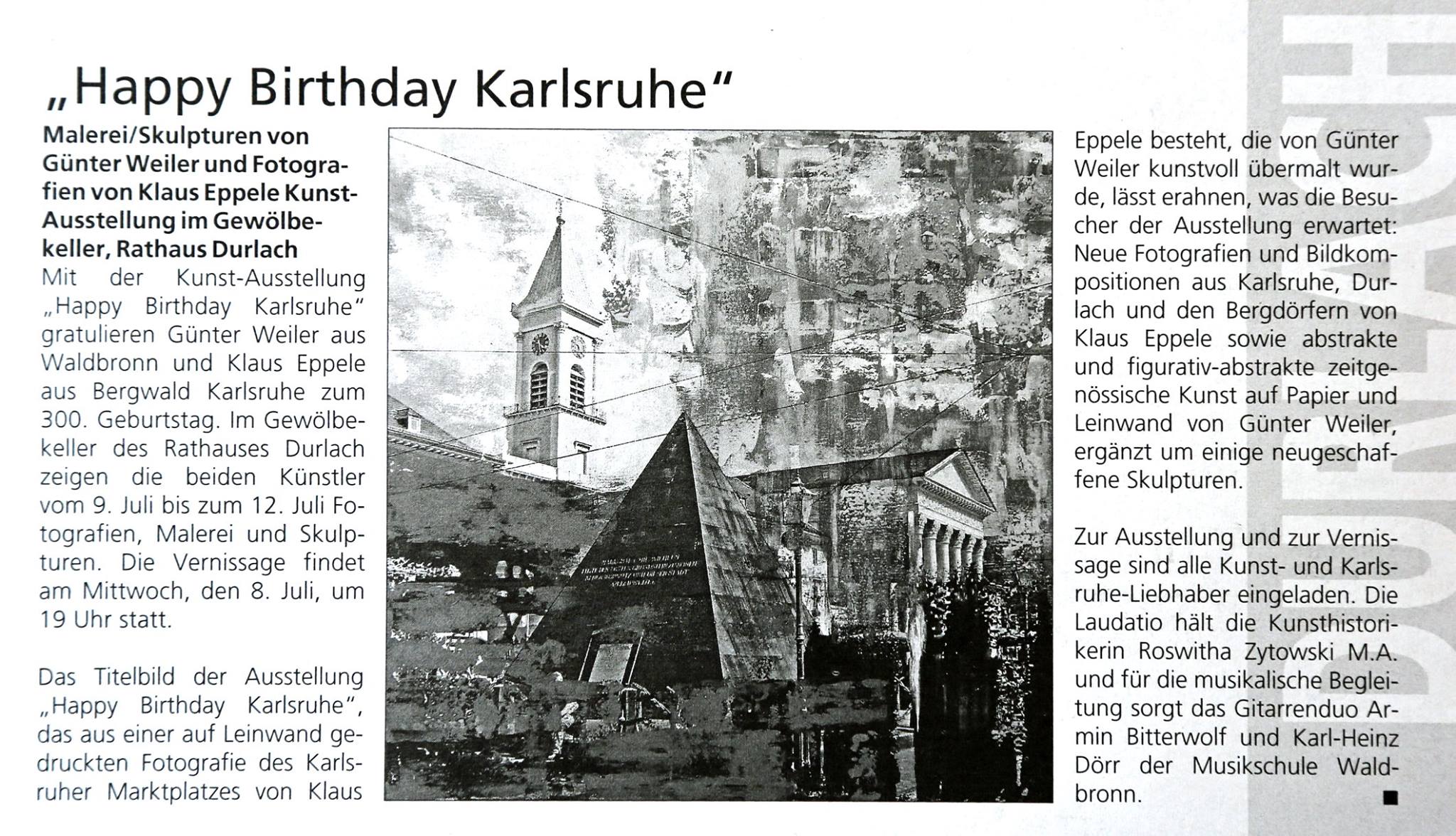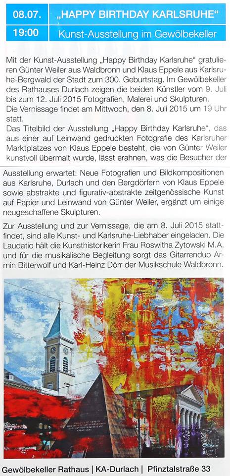 im Juli 2015Gemeindebrief Palmbach-Stupferich im Juli 2015Wochen-Journal Durlach vom 26. Juni 2015Mitteilungsblatt Hohenwettersbach im Juni 2015Monatsspiegel Karlsruhe im Juli 2015Wochenblatt Karlsruhe vom 24. Juni 2015Wochenblatt vom 17. Juni 2015