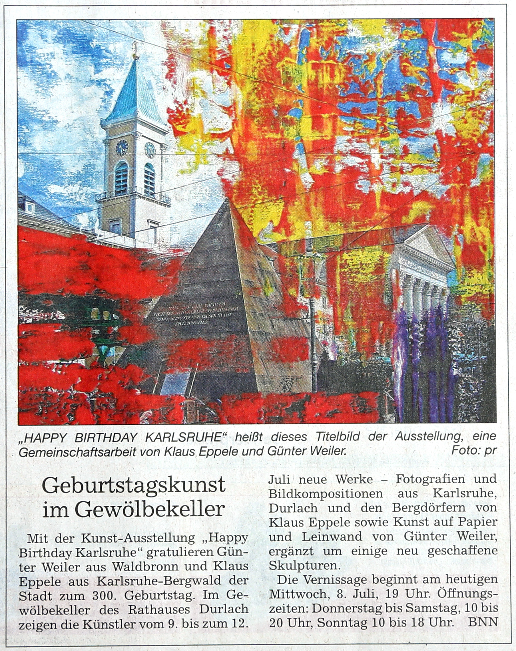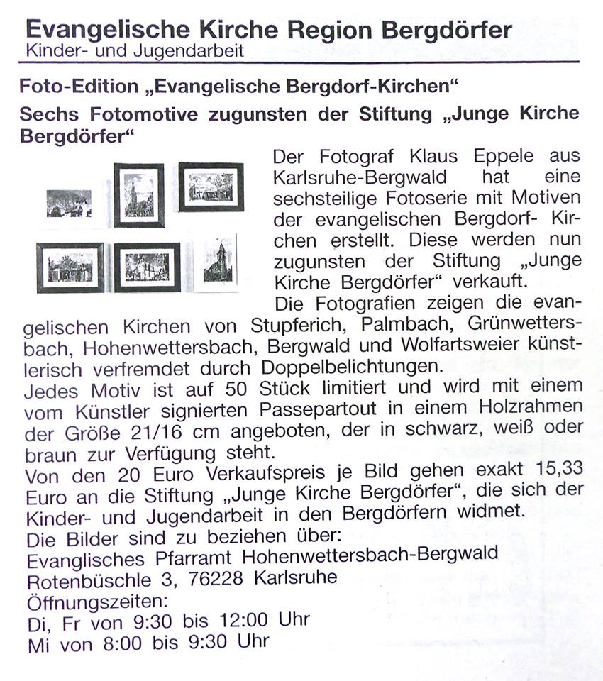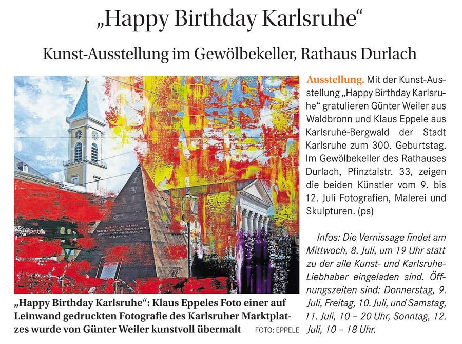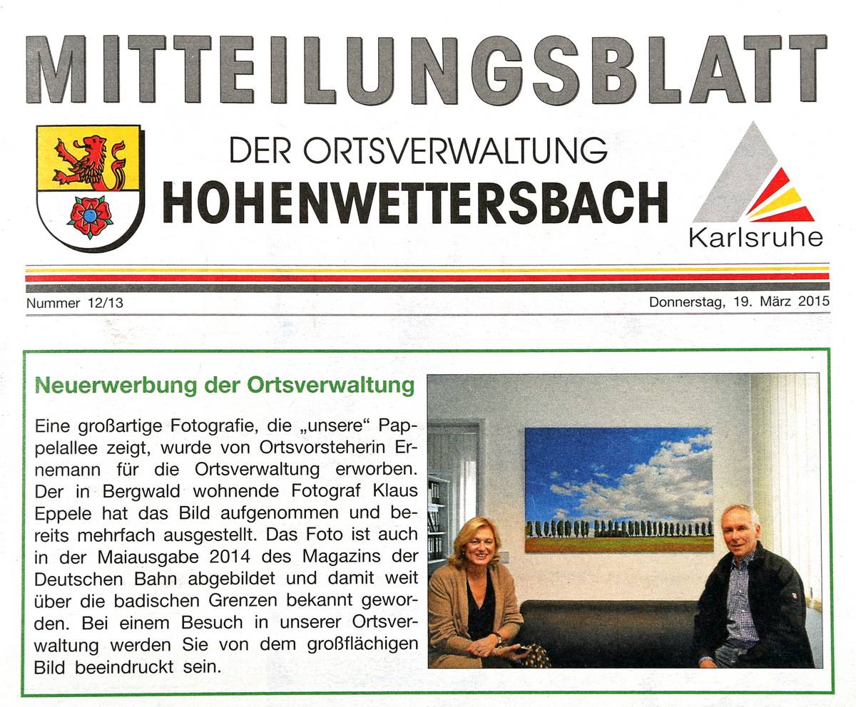 im Juli 2015Gemeindebrief Palmbach-Stupferich im Juli 2015Wochen-Journal Durlach vom 26. Juni 2015Mitteilungsblatt Hohenwettersbach im Juni 2015Monatsspiegel Karlsruhe im Juli 2015Wochenblatt Karlsruhe vom 24. Juni 2015Wochenblatt vom 17. Juni 2015