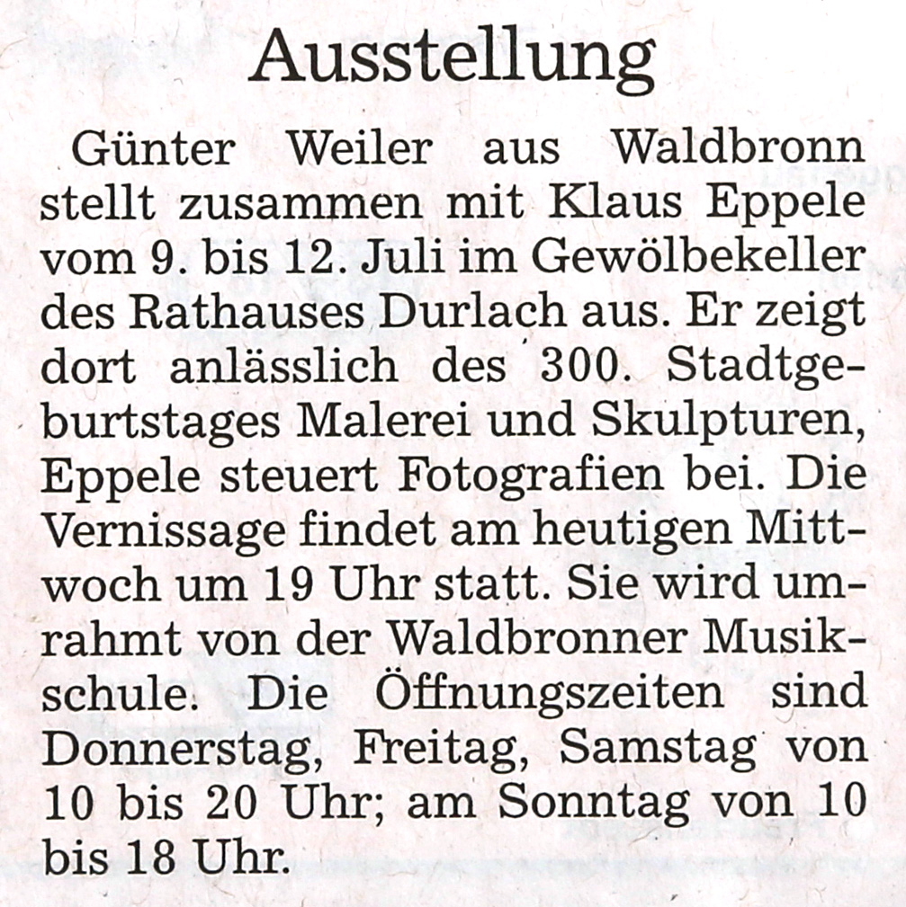 im Juli 2011Wochenblatt vom 15. und 22. Juni 2011Durlacher Blatt vom 17. Juni 2011www.durlacher.de im Juni 2011Wochenjournal Durlach vom 10.Juni 2011Boulevard Baden vom 12. Juni 2011kalender.karlsruhe