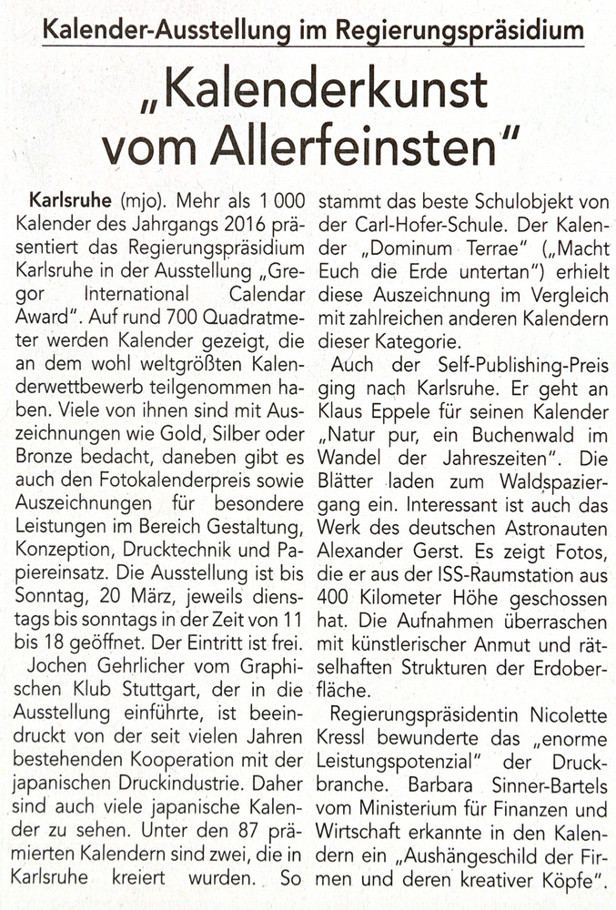Wochenjournal Durlach vom 29. Januar 2016Badische Neueste Nachrichten vom 25. Januar 2016Durlacher.de im Januar 2016Metropolnews