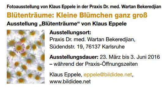 vom 14. April 2016Monatsspiegel im April 2016Der Kurier vom 18. März 2016Wettersbacher Anzeiger vom 17. März 2016Inka Stadtmagazin im März 2016Regio-News im März 2016Metropolevents im März 2016Karlsruher Wochenblatt vom 16. März 2016Der Kurier vom 11. März 2016Wettersbacher Anzeiger vom 10. März 2016Wettersbacher Anzeiger vom 03. März 2016Der Sonntag am 06. März 2016Regio-News im März 2016Treffpunkt Karlsruhe im März 2016Monatsspiegel im März 2016Badische Neueste Nachrichten am 06. Februar 2016Metropolnews